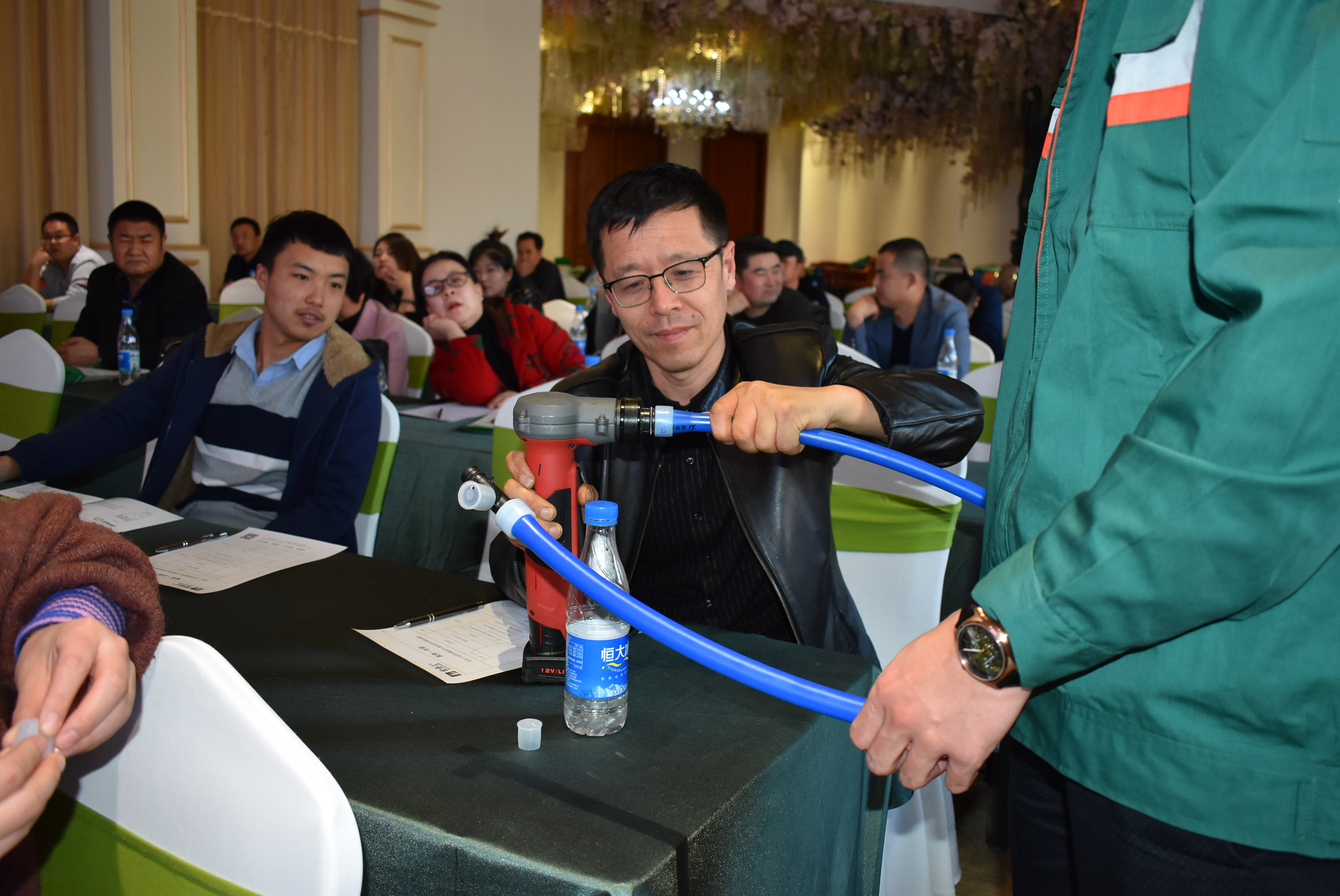 重点提出米兰·(milan)1+PE-Xa给水系统较目前市场主流给水系统降低70%的风险点,耐压高67%,耐温高32%,会上通过现场实验,展现了PE-Xa给水管超强的记忆功能,应对变形折伤加热即可无损复原。