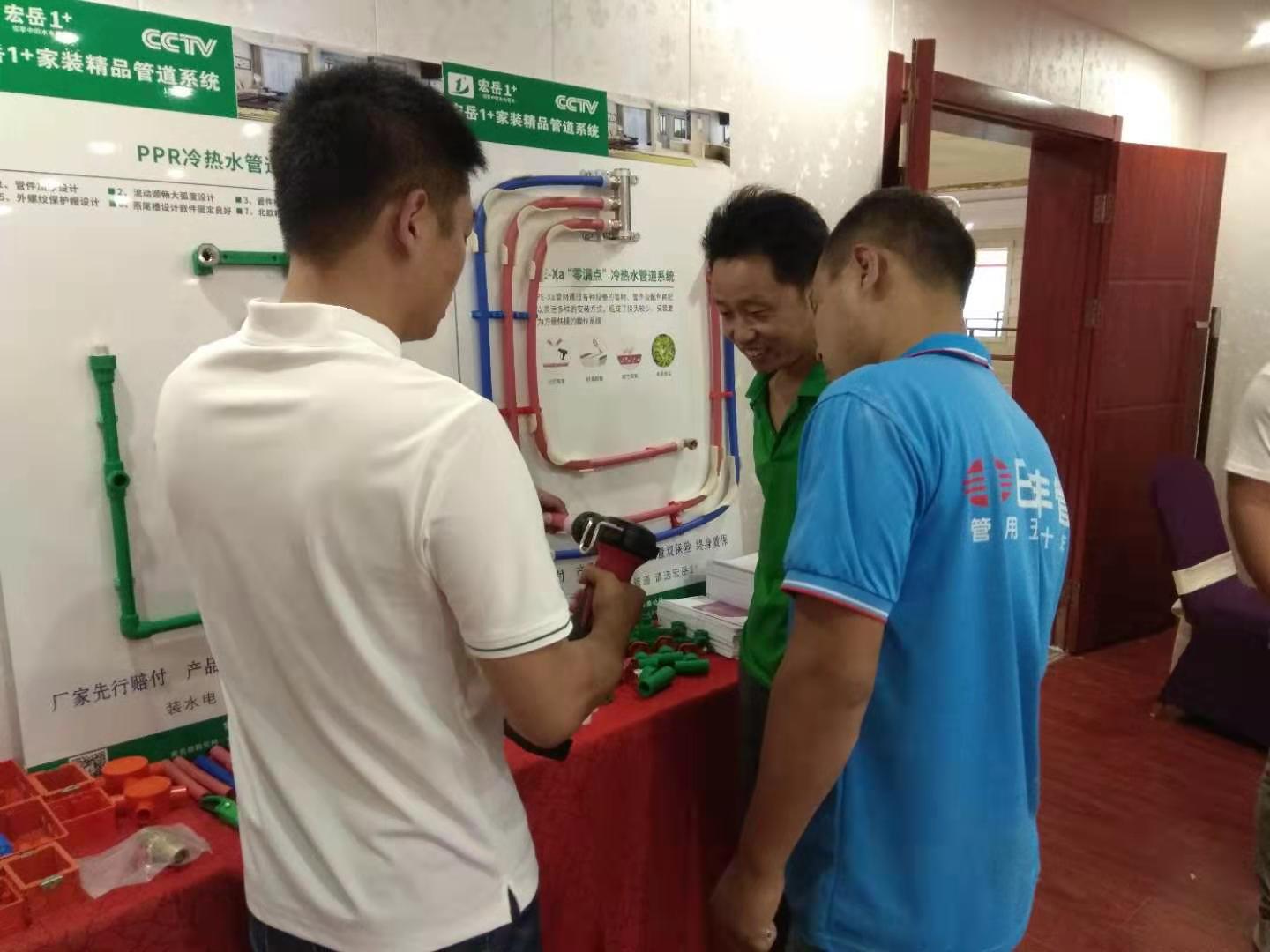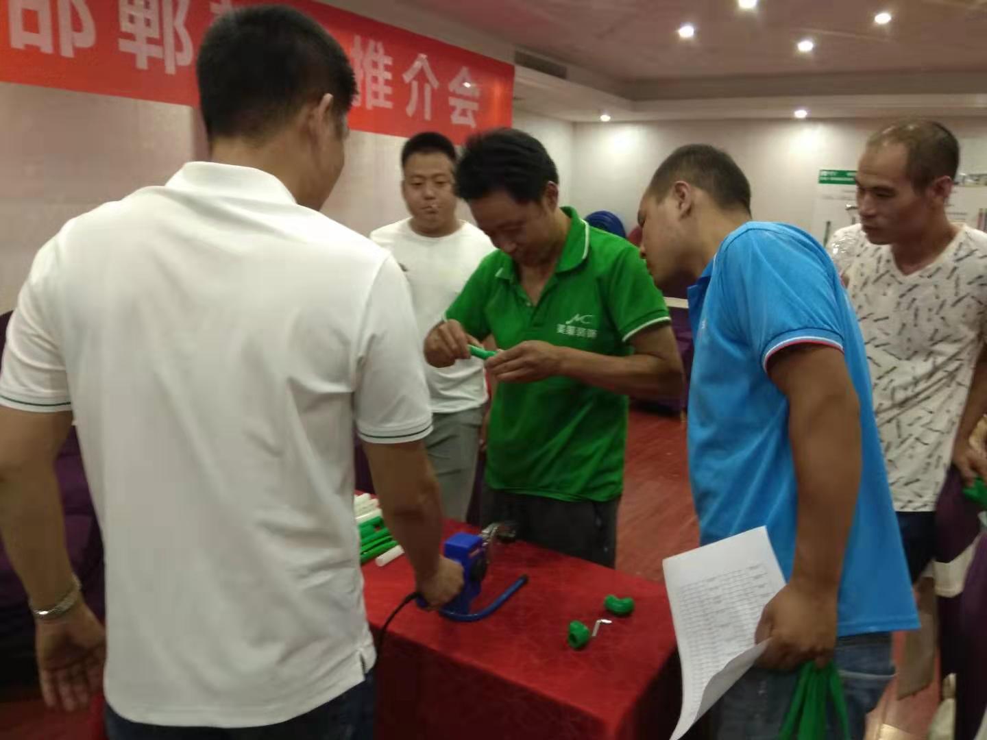 会上,米兰·(milan)1+邯郸服务中心向在场的水电技师们隆重推出了PE-Xa零漏点给水系统,该系统较目前市场主流给水系统降低70%的漏水风险点,耐压性高67%,耐温性高32%。