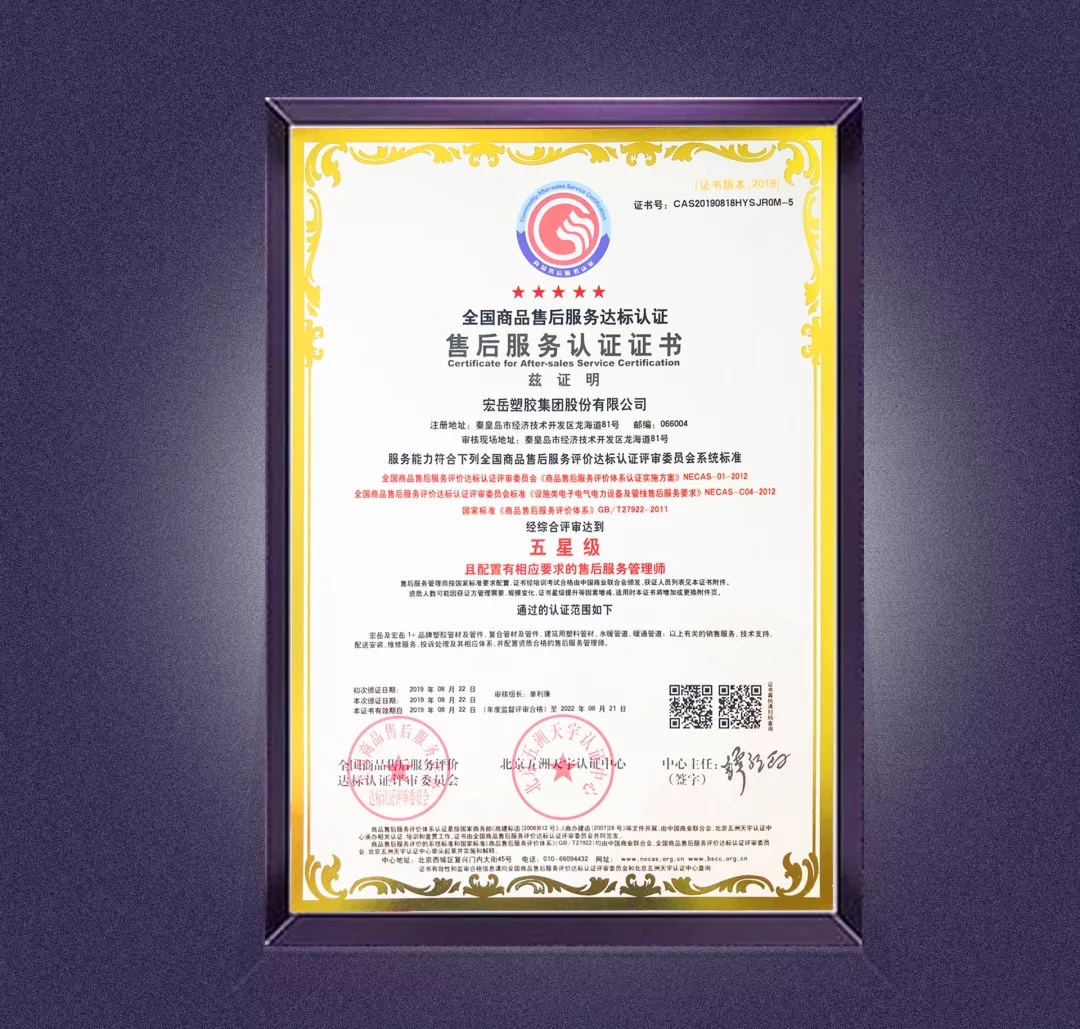 8月22日,米兰·(milan)塑胶集团股份有限公司通过全国商品售后服务达标认证,获得五星级售后服务认证证书。