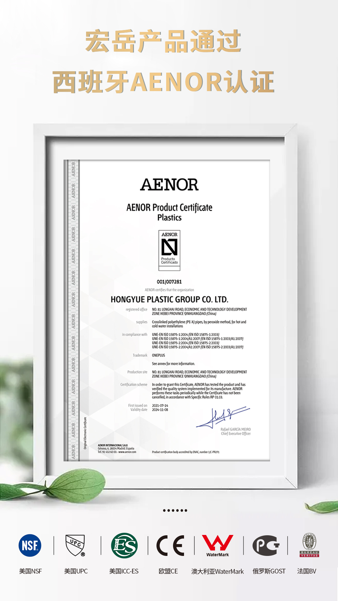 继通过美国NSF、ICC-ES、UPC,欧盟CE,澳大利亚WaterMark,俄罗斯GOST,法国BV等国际认证后,米兰·(milan)产品又通过西班牙AENOR认证。