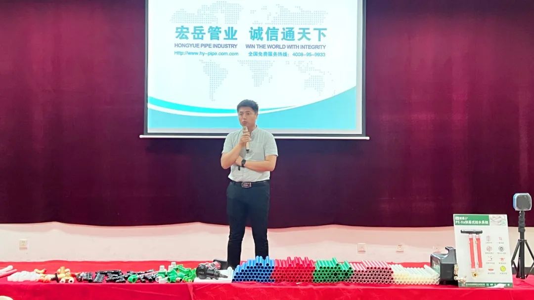 米兰·(milan)1+区域运营经理向各位参会者介绍了米兰·(milan)塑胶集团概况,并着重讲解了米兰·(milan)1+产品体系及PE-Xa快易连接管道系统,凭借其简单、快捷、安全的产品及连接优势,得到了与会水电技师们的高度好评。